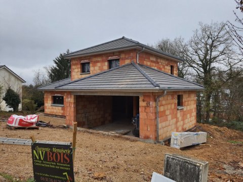 Votre entreprise de construction a réalisé la pose et l'installation de de charpente fermette avec toiture ardoise hp10 sur une maison à Valentin.